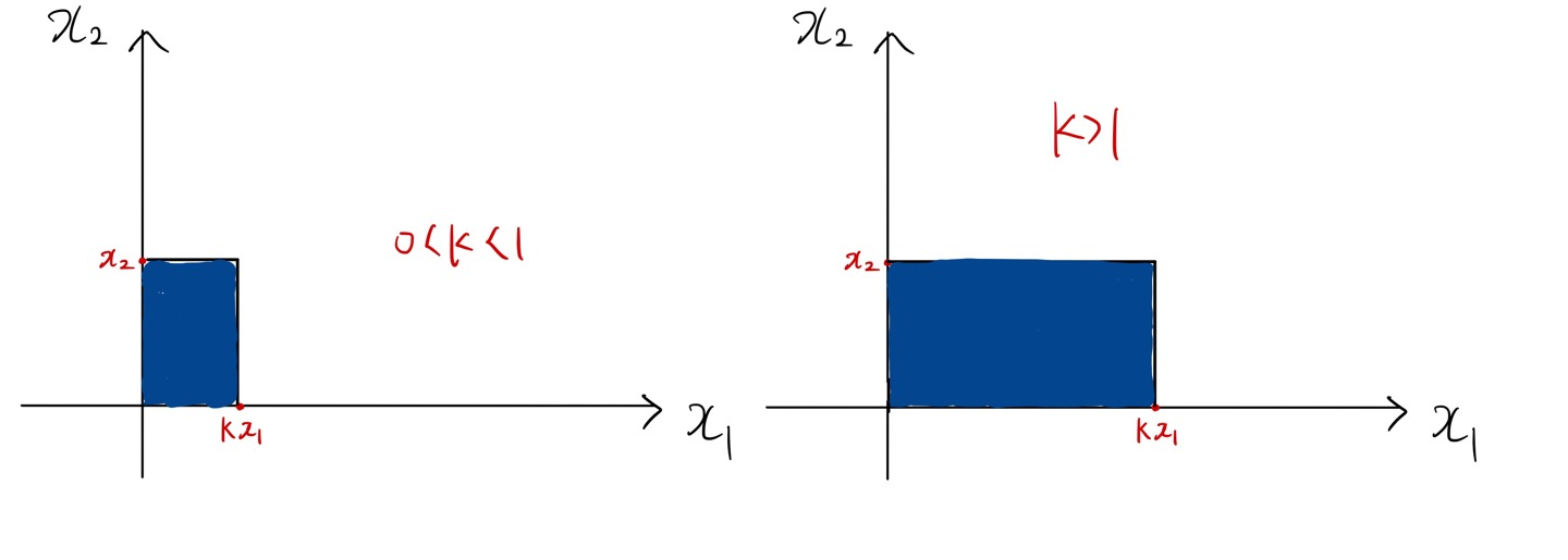 위의 경우에서 \(0 < k < 1\)인 경우를 contraction, \(k > 1\)인 경우를 expansion이라고 하며, 이 transformation의 경우 linear transformation이 됩니다. (행렬곱을 한 transformation의 경우, 행렬곱의 분배법칙의 특성에 의해 항상 linear transformation이 되는데, 이는 이후의 포스팅에서 다루겠습니다.)