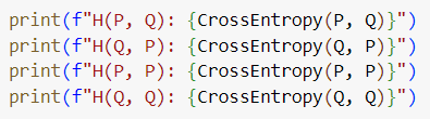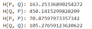 실제로 $H(P, Q)$ 와 $H(Q, P)$ 의 값을 계산한 결과를 보면 아래와 같습니다.