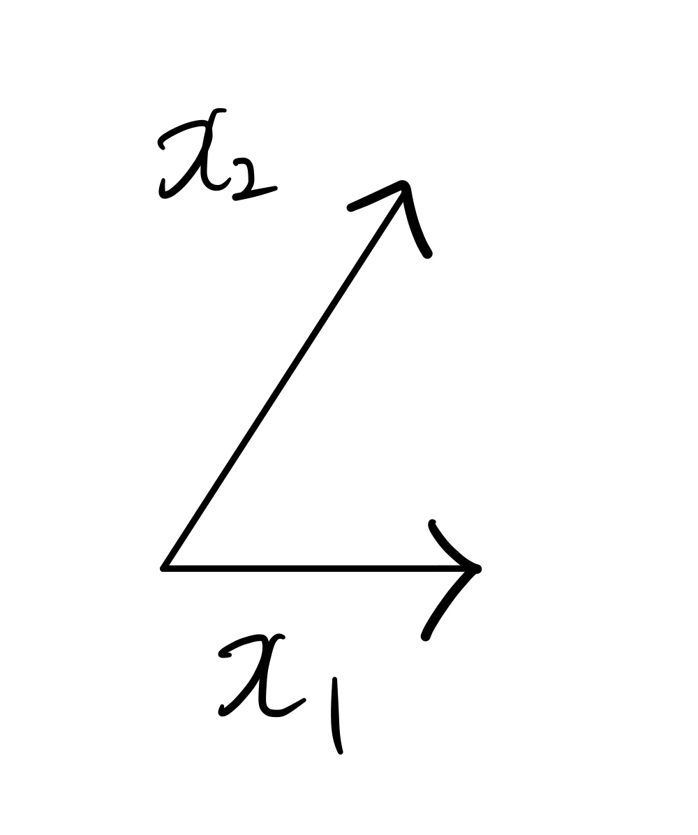 어떤 \(\mathbb{R}^2\) space 평면에 \(x_1, x_2\)가 아래의 그림과 같이 있다고 한다면